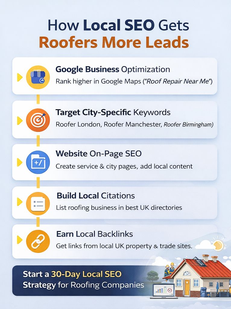 This page explains how local SEO for roofers in England (UK) works — and how a structured 30-day strategy can start generating consistent roofing enquiries.