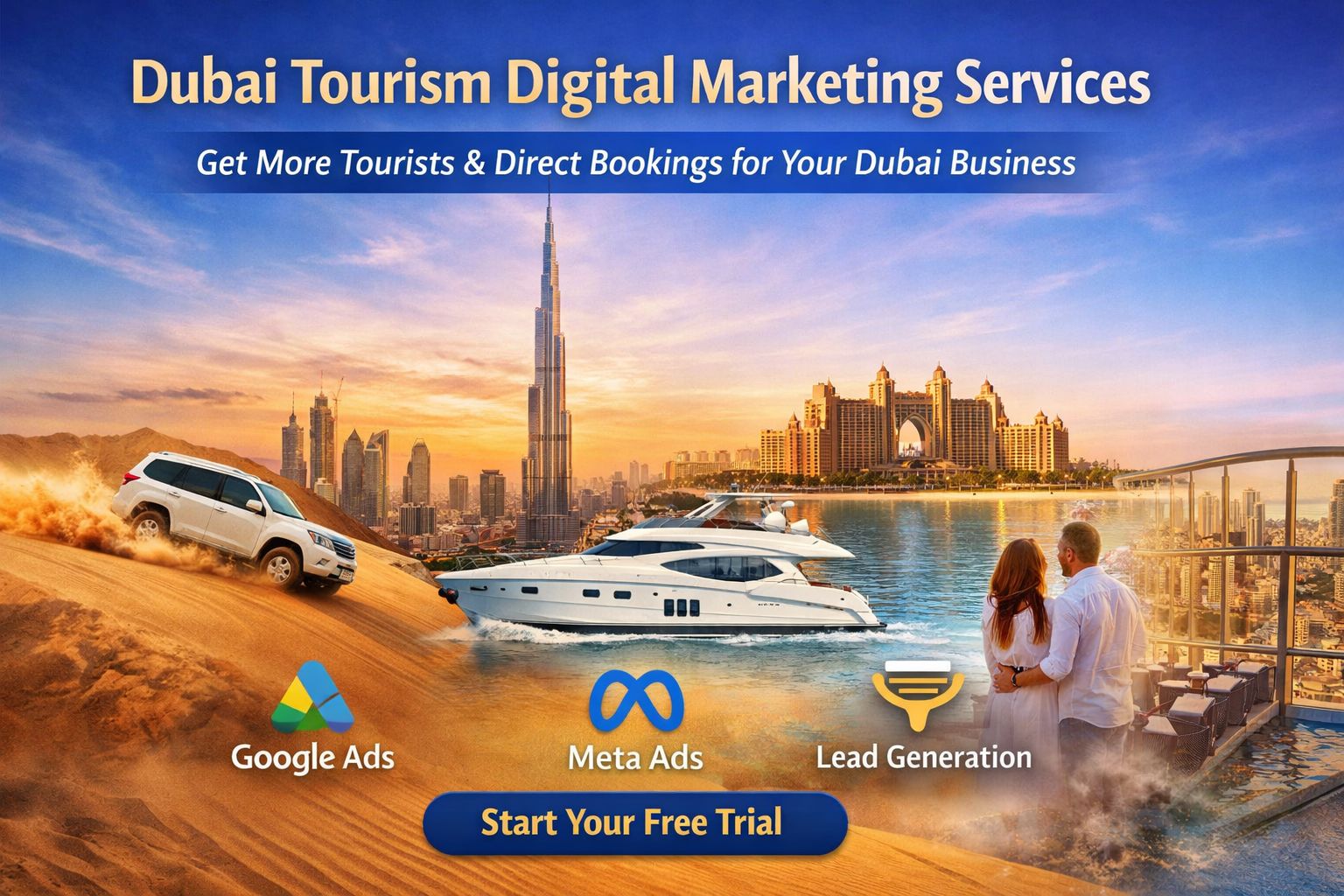 We help Dubai-based travel agencies, tour operators, and experience providers generate high-intent tourist leads using Google Ads, Meta Ads, and conversion-focused landing pages.